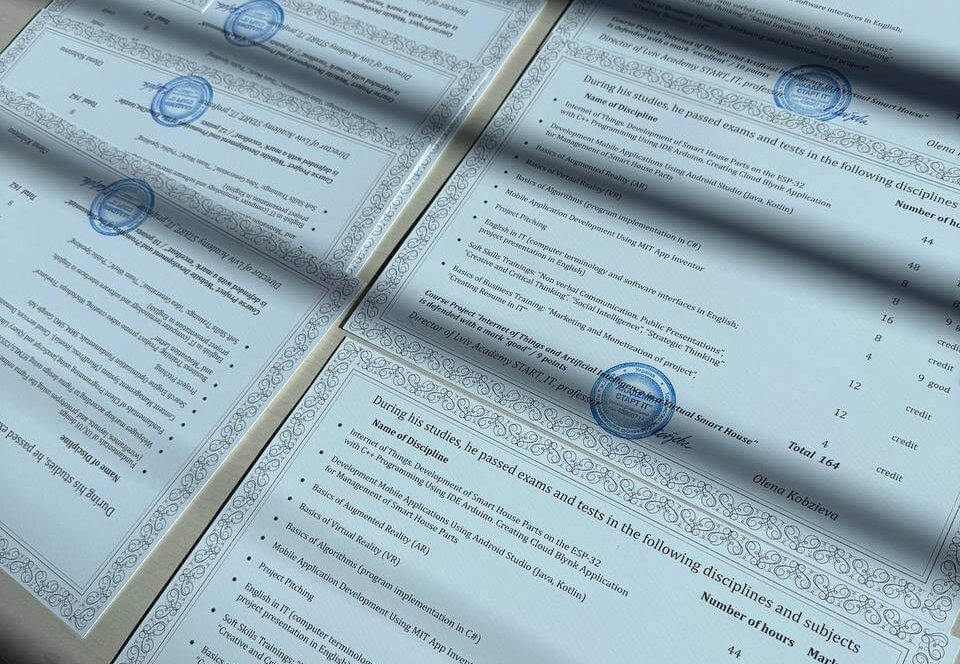 У цьому випадку випускник отримує диплом англійською мовою - документ, який можна використати як додаткову перевагу під час вступу за кордоном або на співбесідах у міжнародних ІТ-компаніях, стартапах та проєктах. Для підлітка це вагомий елемент портфоліо, що підкреслює високий рівень підготовки, яку забезпечують наші ІТ курси.